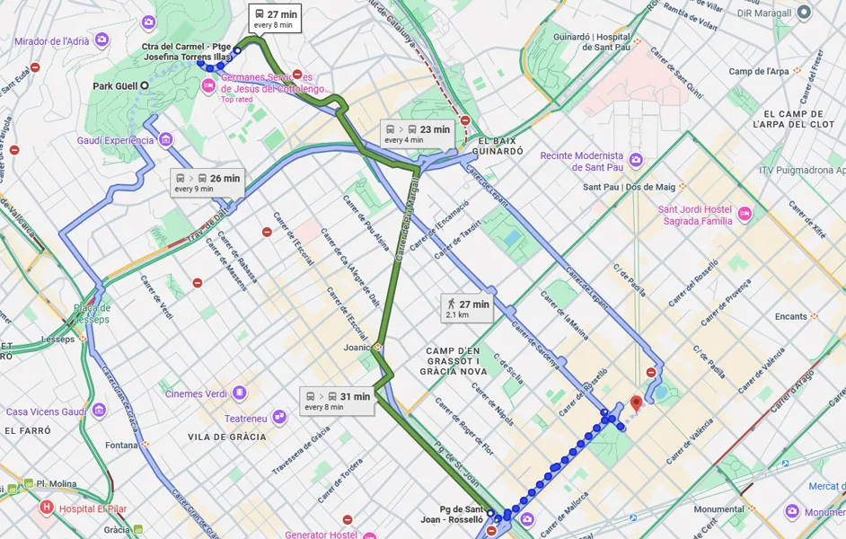 Tips: Many visitors also do this trip in reverse. From Sagrada Familia to Park Güell, following the same route in the opposite direction.