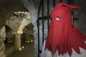 Enter the candle-lit Dungeon to encounter executioner Jan Mydlář and learn about gruesome medieval torture methods, witnessing the terrifying instruments used during the infamous 1621 Old Town Executions. This tour offers a spine-chilling glimpse into Prague’s haunted history and legendary mysteries.