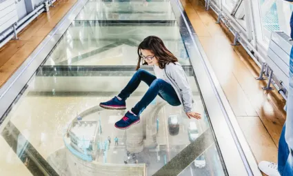 - Stroll across the spectacular glass walkway, 42 metres above the River Thames